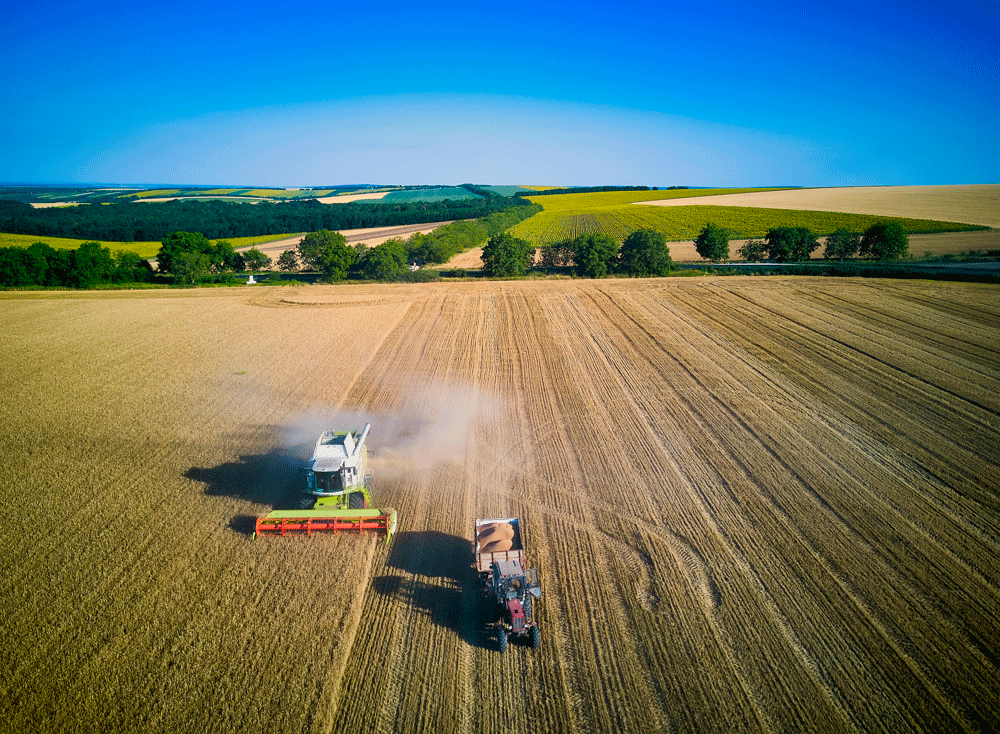 - Récolte de céréales (blé, orge, colza, pois, maïs...)