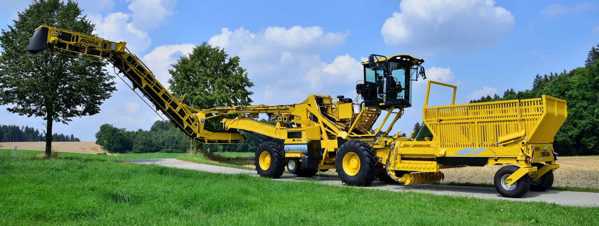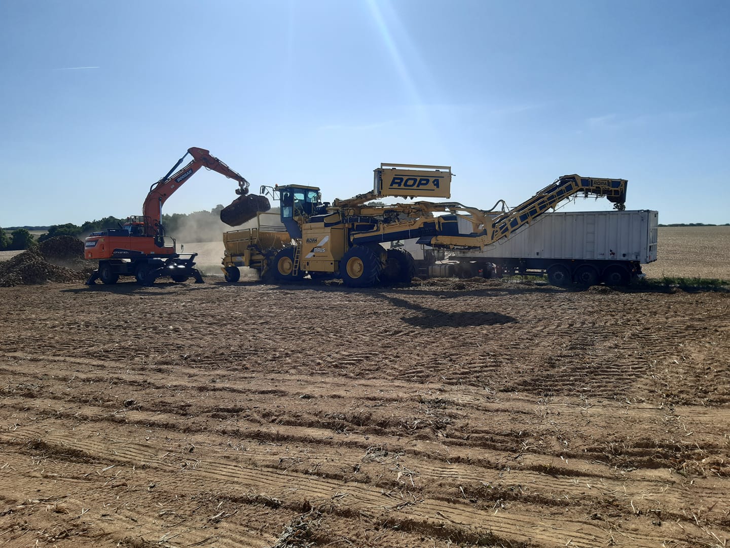 La ROPA BunkerMaus est une machine de travail automotrice pour le nettoyage et le chargement de betteraves à sucre. Le chargement de la ROPA BunkerMaus s'effectue via une autre machine - Chargeur sur roues ou excavatrice